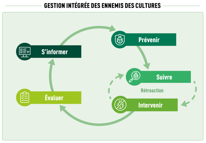 Résumé des étapes d’une stratégie efficace de gestion intégrée des ennemis des cultures.