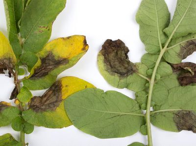 Le mildiou de la pomme de terre est la maladie la plus importante dans la production de pommes de terre. Cette maladie peut également s’attaquer aux tomates, aux poivrons et aux aubergines. Sa dissémination est assurée par des spores pouvant voyager sur plusieurs kilomètres.