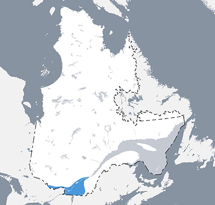 Au Québec, l’espèce est commune dans le bassin du fleuve SaintLaurent, des rivières Richelieu et des Outaouais. Elle a cependant été signalée jusqu’aux environs de RivièreOuelle dans l’estuaire moyen du SaintLaurent.
