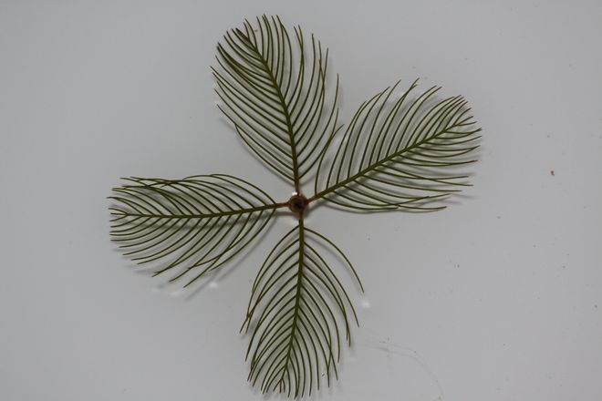Il y a six espèces de myriophylle indigènes (PDF 1,10 Mo) au Québec. Leurs feuilles ont généralement jusqu’à 11 paires de folioles. Sur leur tige, l’espace entre les groupes de feuilles est égal ou inférieur à 1 cm.