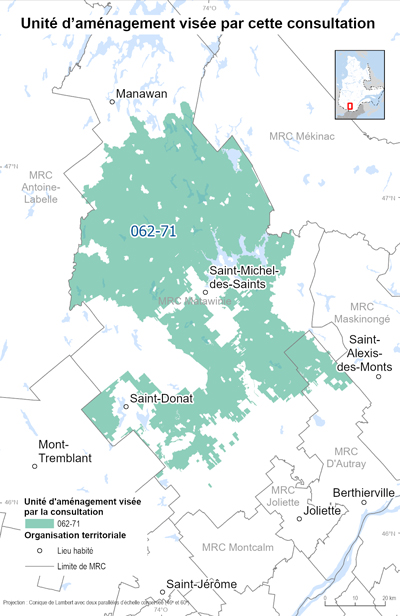 La carte suivante montre l’unité d’aménagement 062-71 visée par cette consultation.