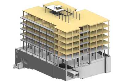 À la suite d’une phase de recherche approfondie et d’analyse comparative des différentes pistes envisagées, certaines de ces solutions ont été identifiées comme des solutions présentant un potentiel d’impact particulièrement élevé pour le projet et pour l’industrie. Les axes prioritaires suivants ont donc été retenus comme objectifs centraux du projet: la maximisation du bois apparent et l'intégration d’une structure de bois hybride. La présente étude détaille la conception, les défis et les résultats obtenus à l’égard de ces objectifs.