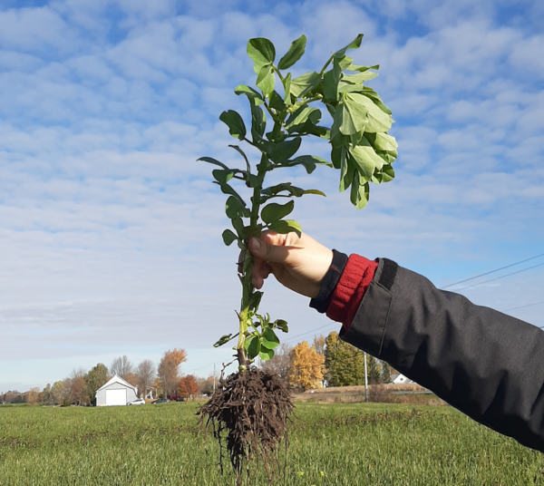 Cette légumineuse annuelle croît rapidement, au même titre que le pois fourrager. Elle capte de l’azote à l’aide des nodules sur ses racines, ce qui peut réduire les besoins en fertilisants azotés l’année suivante. Elle doit idéalement être semée en août pour assurer une croissance adéquate, quoiqu’elle tolère des températures basses allant jusqu’à -5 ° C. Son architecture assez droite lui permet de rester debout durant l’hiver et de réchauffer le sol plus rapidement que le pois fourrager. Son système racinaire est très structurant à la surface. Ses grosses racines se déploient autant à la surface qu’en profondeur lorsque la santé du sol est bonne. Son défaut? La semence doit être enfouie dans le sol en raison de sa grosseur. De plus, le prix d’ensemencement est élevé si la féverole est semée seule. Il est donc plus intéressant de la mélanger avec d’autres légumineuses.