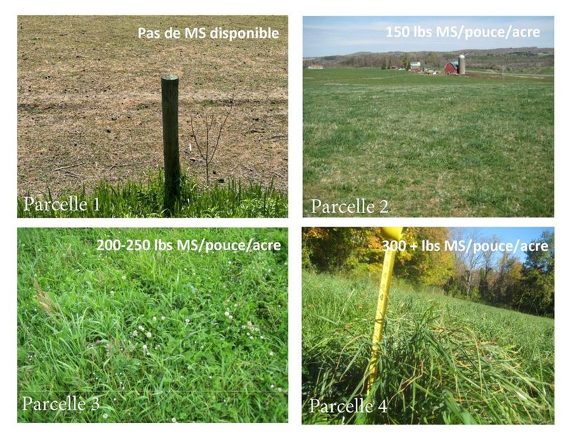 Parcelle 4 : Il y a un excellent volume de matière sèche disponible (300 livres par pouce par acre).
