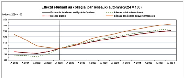 Effectif étudiant au collégial par réseaux (automne 2024 = 100) (JPG 44 Ko)
