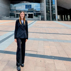 « Effectuer un stage au Parlement européen en tant que rare canadienne au sein d’une institution européenne a été un immense privilège et une occasion en or dans mon parcours professionnel. Évoluer au sein d’une des plus importantes institutions européennes m’a permis de plonger au cœur des affaires européennes dans une période cruciale pour les relations transatlantiques et la relation bilatérale entre le Canada et l’Union. Durant ce stage au sein de la Direction générale des politiques extérieures de l’Union et de l’Unité Relations transatlantiques et Gouvernance mondiale (G7/G20), j’ai eu la chance de supporter les membres du Parlement européen de la Délégation pour les relations avec le Canada et de la Délégation pour les relations avec les États-Unis dans leurs activités de diplomatie interparlementaire. Agissant en tant qu’analyste des affaires canadiennes, j’ai eu l’opportunité de suivre de près l’évolution de l’actualité canadienne et américaine et de prendre part à des rencontres diplomatiques entre ambassadeurs, politiciens et leaders européens. Évoluer dans ce milieu en constante mutation tout en étant entourée de collègues provenant des 27 pays membres m’a permis d’apprendre une multitude de nouvelles compétences en milieu international, tout en développant des habiletés en diplomatie, recherche et analyse. Ayant pu analyser des sujets d’envergure tels que les élections canadiennes, le Sommet du G7 et de l’OTAN ainsi que les Sommets UE-Canada m’a donné la chance d’apprendre énormément. Ce stage m’a aussi aidé à développer un important réseau de contacts à Bruxelles et de participer à de nombreux événements de réseautage auprès des décideurs européens. Cette expérience riche en apprentissages, nouvelles rencontres et découvertes au cœur des affaires européennes est une opportunité en or pour débuter une carrière diplomatique et politique. Je recommande fortement aux jeunes québécoises et québécois d’y prendre part et de partir à la découverte de l’Union européenne et de sa capitale. »