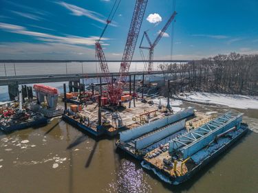 On the existing bridge, heavy vehicles are prohibited from using the right lane in either direction. Overweight vehicles remain prohibited at all times on the structure.