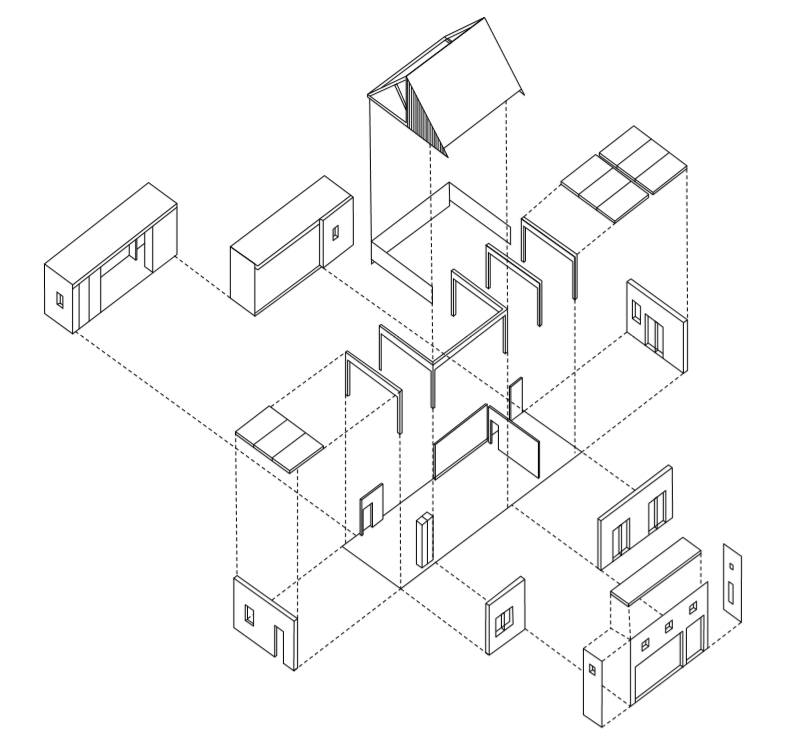 Le kit permet de standardiser les détails de construction et de minimiser les risques associés à la construction traditionnelle. Tel un jeu de construction, le catalogue de composants préfabriqués permet d’imaginer des bâtiments particuliers, construits avec les mêmes pièces et détails de jonction.