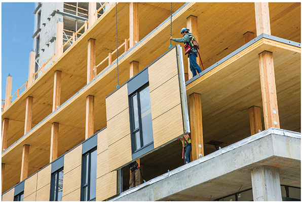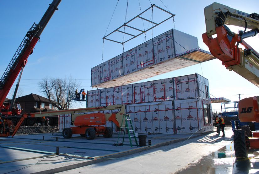 À signaler! Le caractère répétitif des logements se prête bien à l’industrialisation. Devant la nécessité d’adopter des pratiques de construction durables et d’acquérir un gain de productivité, la Société d’habitation du Québec soutient, par divers partenariats et initiatives, le développement de la préfabrication susceptible d’optimiser, à terme, la production de multilogements.