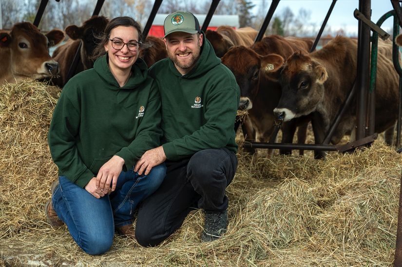 Le parcours atypique d’Emmanuelle Vincent et de Simon Laflamme s’inscrit dans une vision agricole moderne et durable. Les propriétaires de la Ferme Belflamme, à Saint-Anselme, ont réalisé un transfert non apparenté remarquable. Ils ont aussi su faire preuve d’audace en changeant de troupeau, passant de la race holstein à la race jersey. Tournés vers l’avenir, Emmanuelle et Simon placent le développement durable au cœur de leur mission. Ils s’appliquent à produire du lait de qualité supérieure en respectant à la fois le bien-être animal et l’environnement. Également parents de cinq enfants, ils réussissent haut la main à concilier vie familiale et vie professionnelle. Ils trouvent même du temps pour s’engager dans leur communauté! Leur approche entrepreneuriale, leur esprit d’innovation et leur solide habileté en matière de gestion forcent l’admiration. Le couple espère aussi encourager la relève à envisager des transferts non apparentés, une voie prometteuse qui pourrait favoriser davantage l’établissement d’entreprises agricoles.
