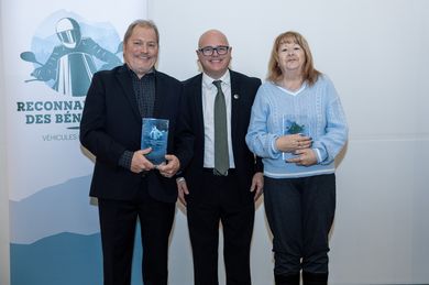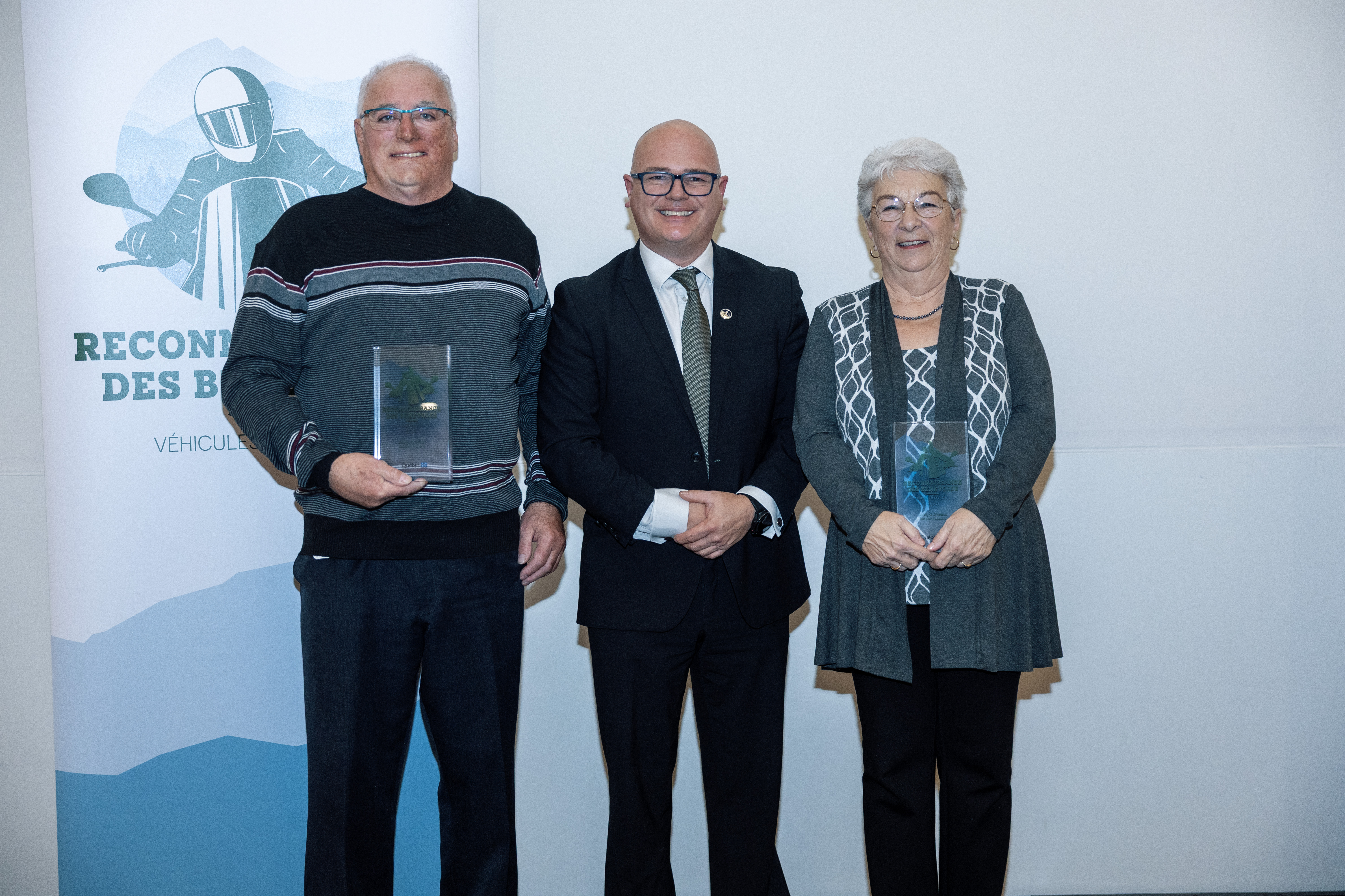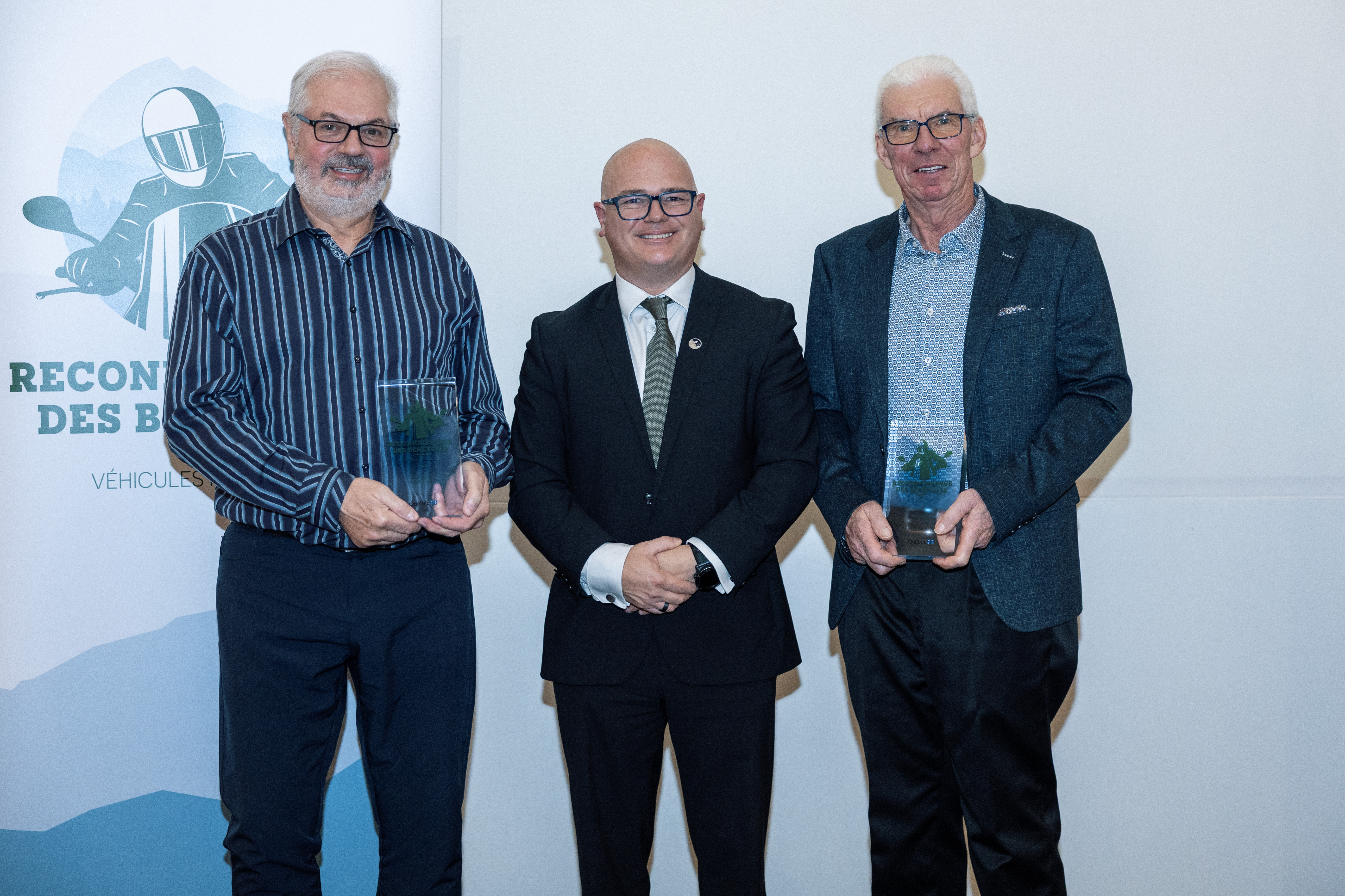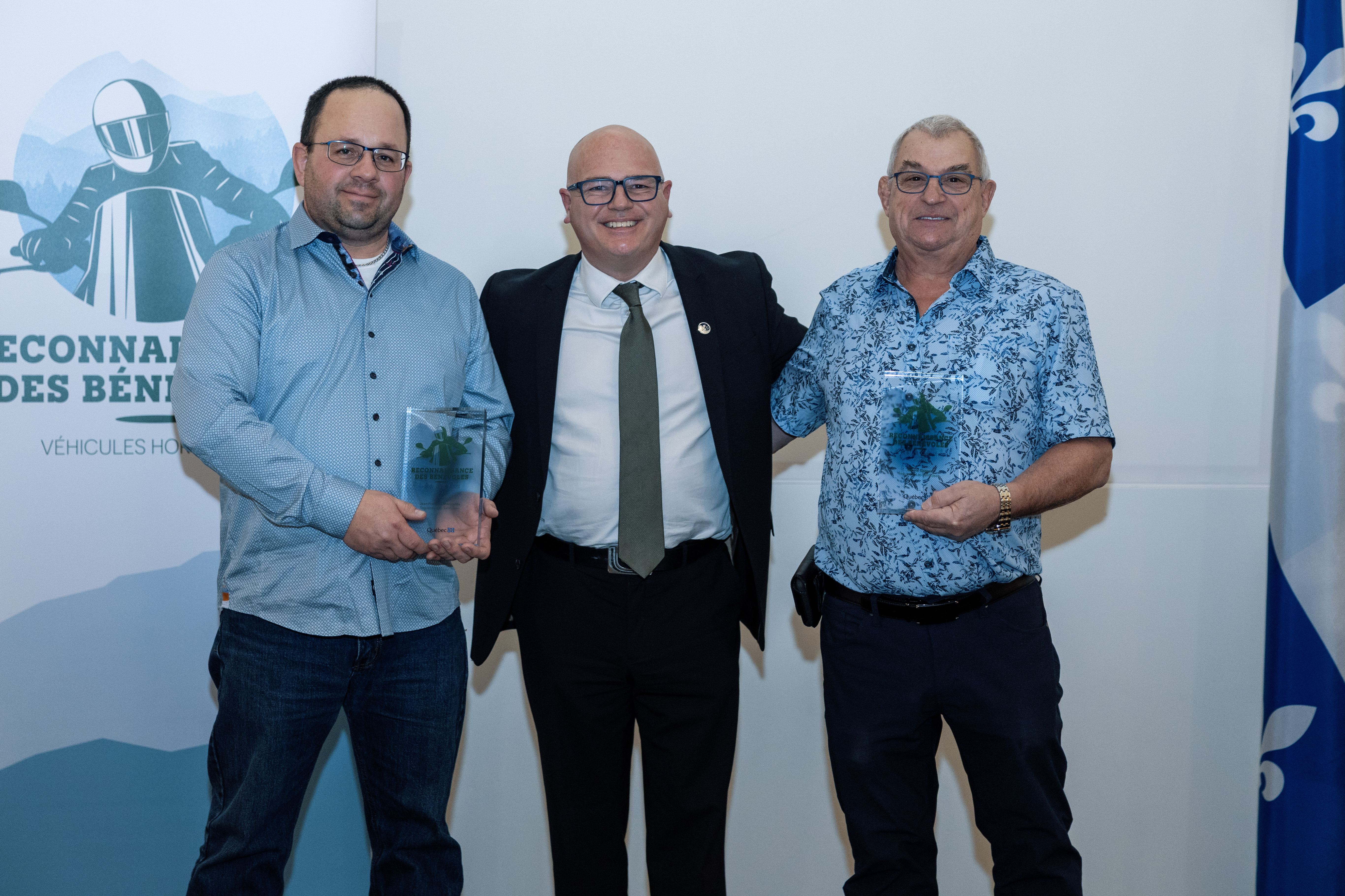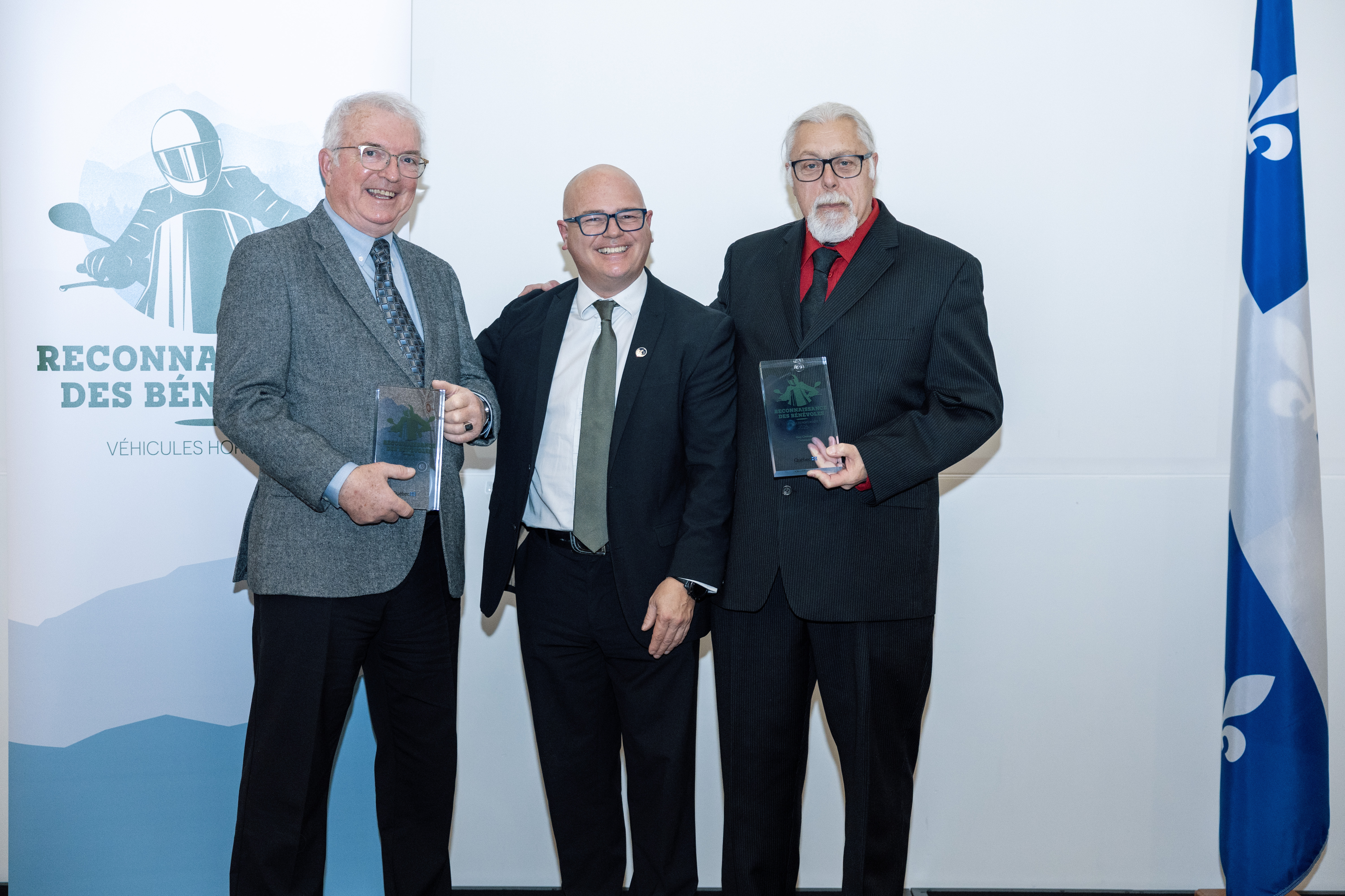Parmi ces lauréates et lauréats, qui ont tous reçu un prix du volet Action régionale, deux se sont vu remettre le prix du volet Excellence. Cet honneur souligne l’apport remarquable de l’engagement bénévole et des actions réalisées, qui assurent le maintien d’une pratique sécuritaire des véhicules hors route au Québec. Il s’agit de M. Daniel Somers de la région de l’Outaouais et de M. Réjean Caron de la région du Centre-du-Québec.