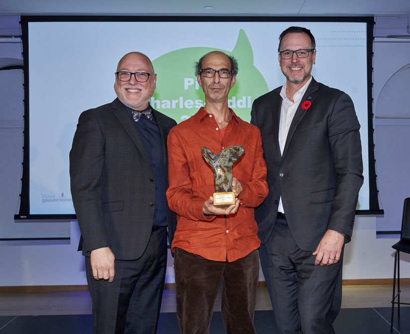 Michel Vallée, directeur général, Culture pour tous ; Salim Hammad, lauréat du Volet national et international ; Jean-François Roberge, ministre de l’Immigration, de la Francisation et de l’Intégration, ministre de la Langue française, et ministre responsable des Relations canadiennes et de la Francophonie canadienne