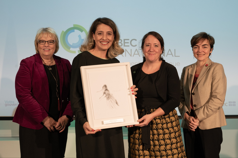 Johanne Hinse, présidente du conseil d’administration de la Fédération des chambres de commerce du Québec; Janaïna Kamide, directrice Services aux entreprises - Attraction de talents, Québec International; Marie-Josée Chouinard, directrice principale - Attraction et rétention de talents, Québec International; Christine Fréchette, ministre de l’Immigration, de la Francisation et de l’Intégration.