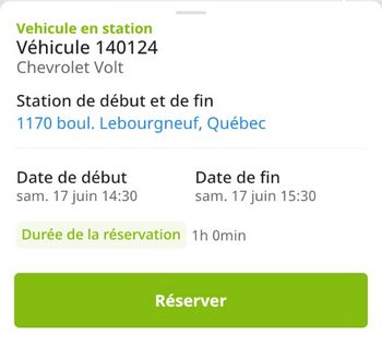 Appuyez sur « Réserver » pour réserver le véhicule présenté :