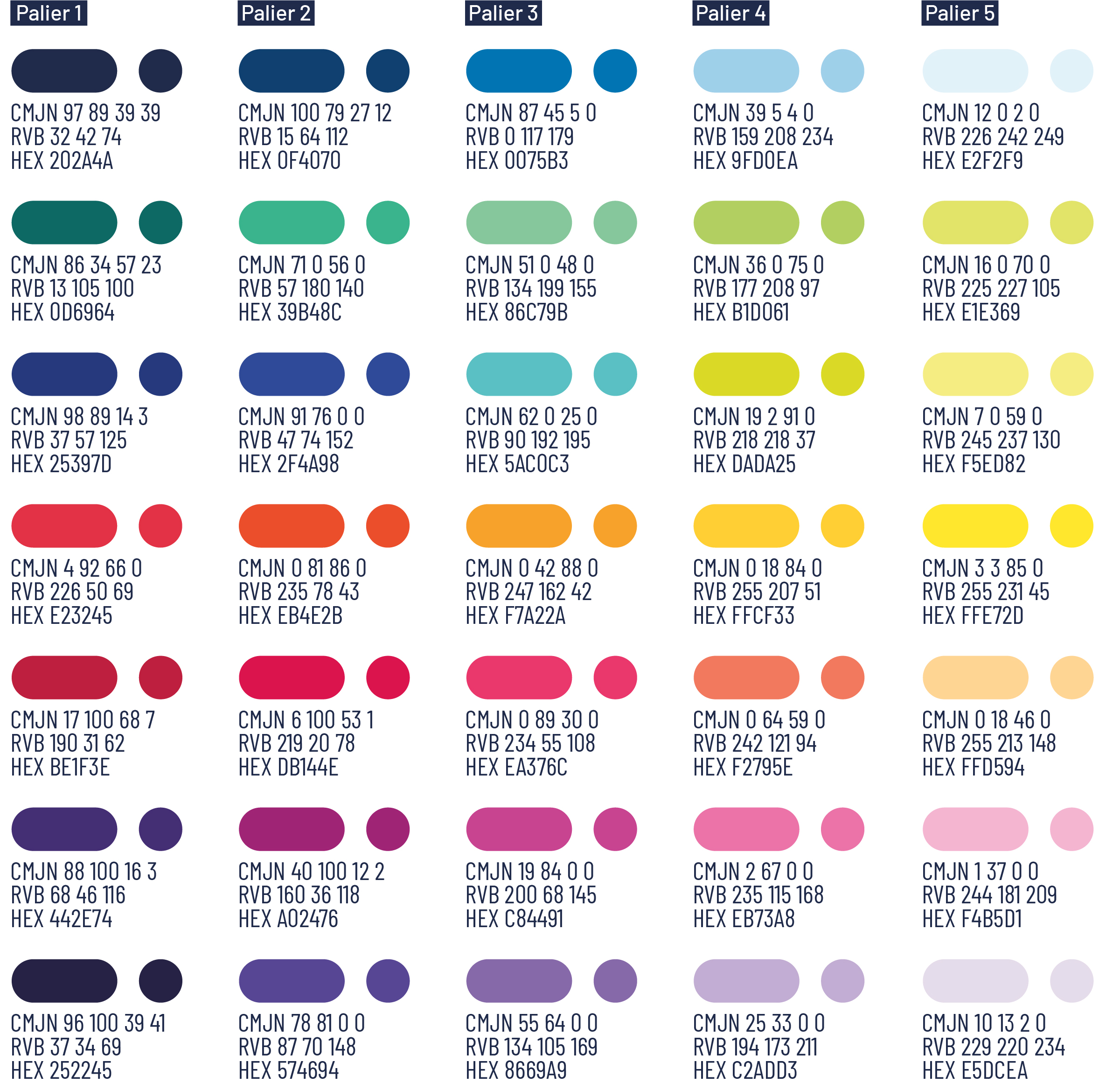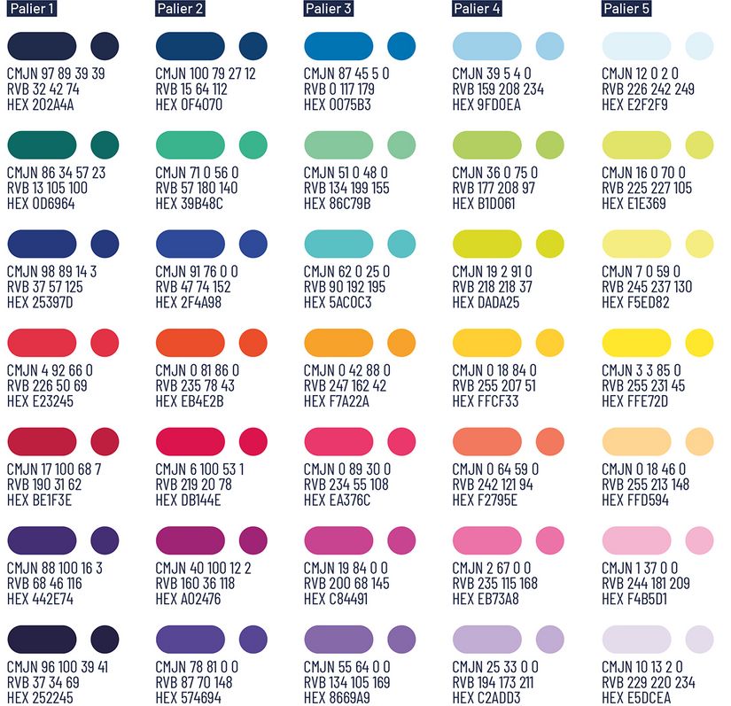 Utilisez des couleurs séparées par au moins deux paliers.