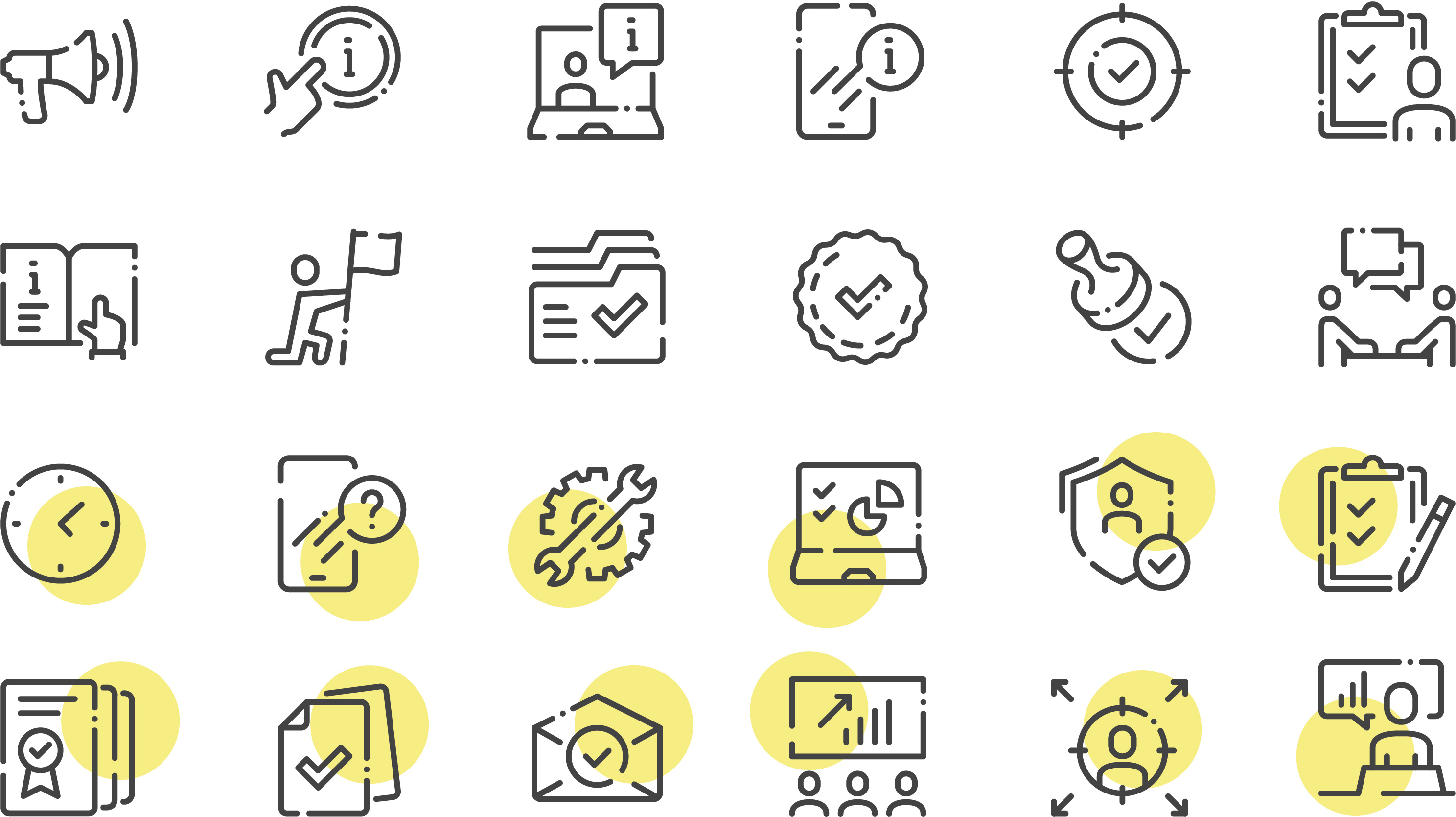 Au besoin, il est possible d’ajouter un rond de couleur en arrière-plan des icônes pour agrémenter la composition et faire un rappel du concept.
