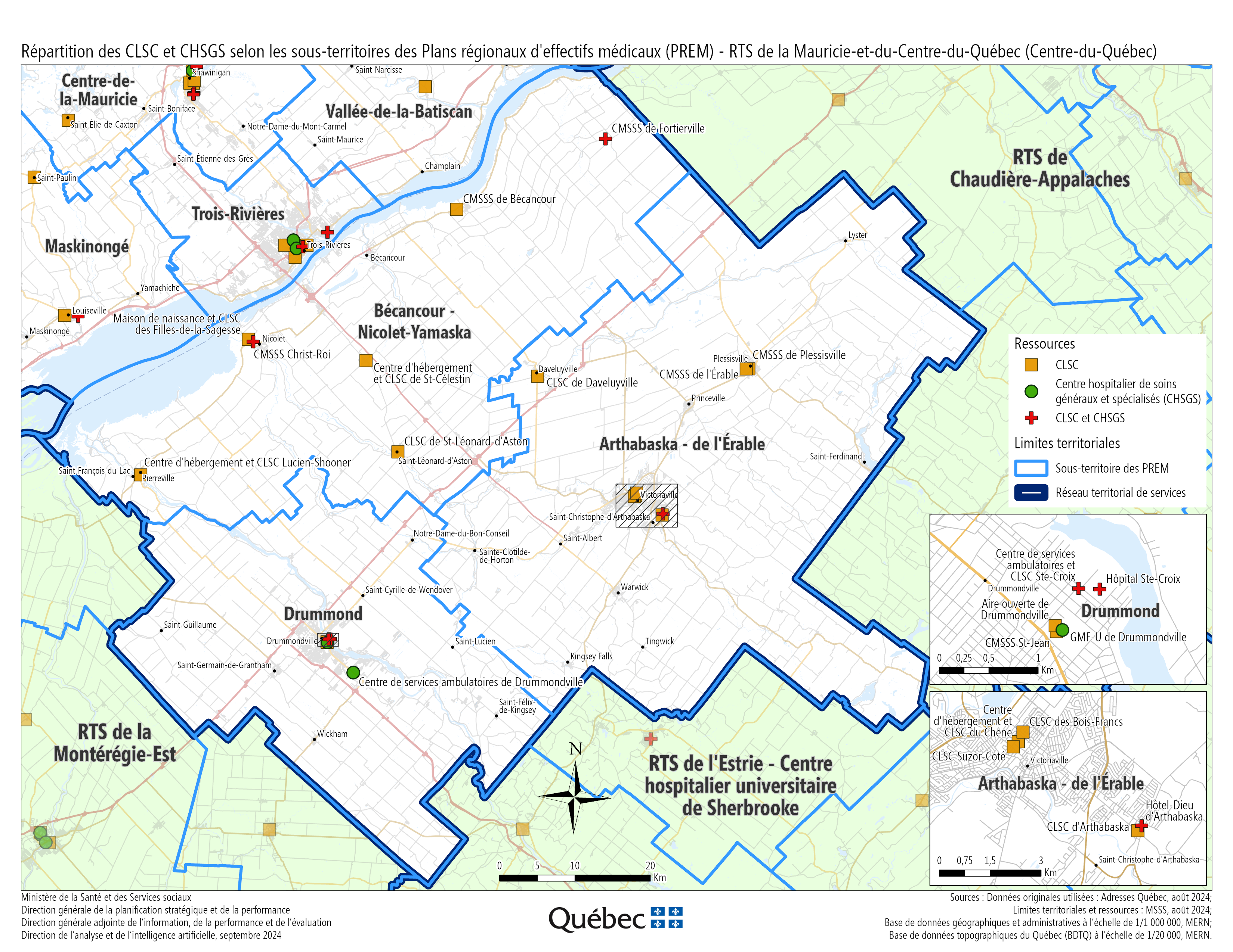 Note 1 : Sous-territoire reconnu comme étant en grande difficulté de recrutement par le DTMF de la région. Si vous souhaitez vous installer dans ce sous-territoire, veuillez communiquer avec le DTMF; tout projet d’installation d’un ou une médecin ou d’un groupe de médecins pourra être étudié, et ce, sans égard au nombre de places disponibles.
