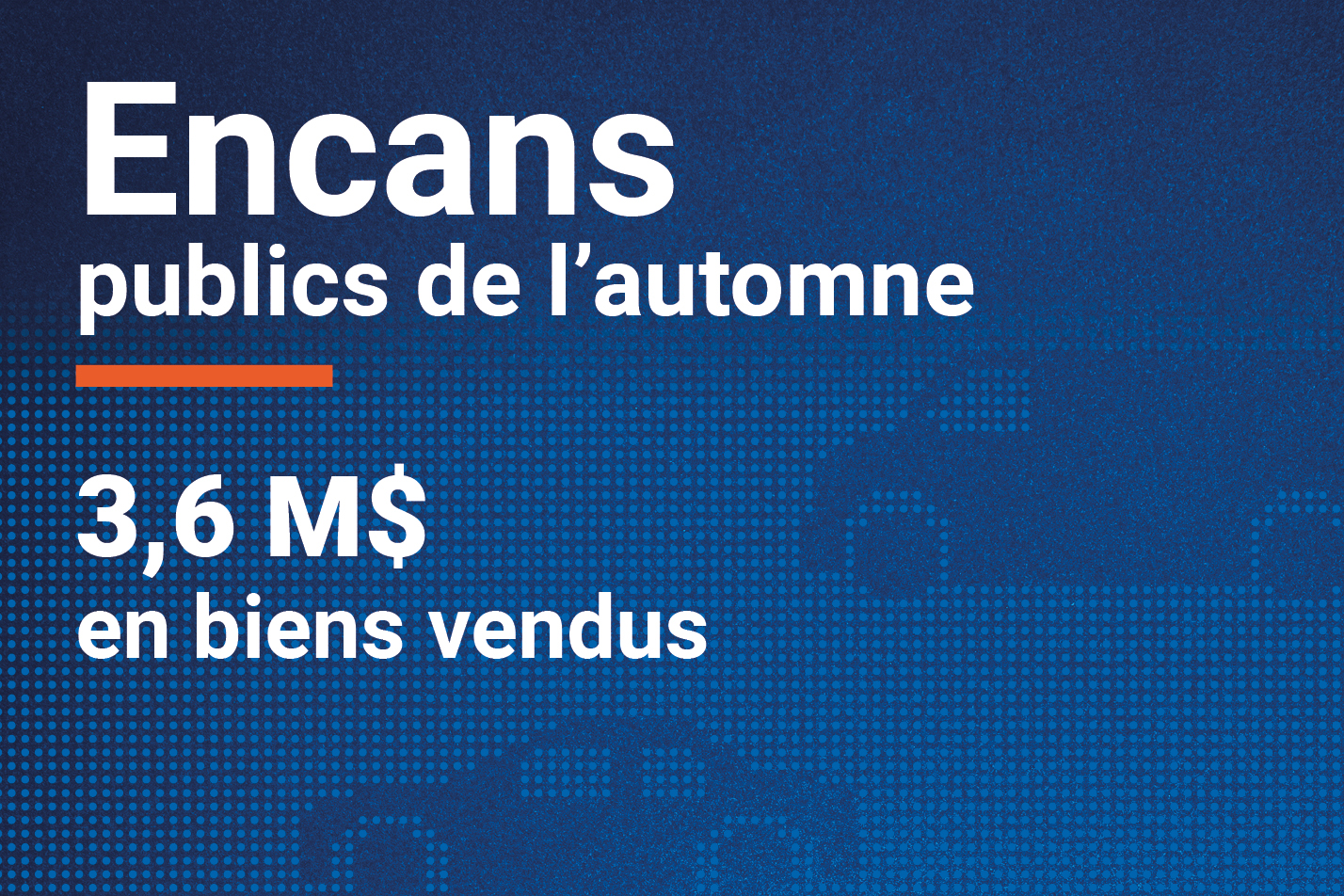 Le Centre d’acquisitions gouvernementales (CAG) a tenu des encans publics le 28 septembre à Montréal et le 26 octobre à Québec. Ces deux activités ont permis de mettre aux enchères plusieurs biens récupérés : automobiles, camionnettes, véhicules utilitaires sport (VUS), pièces de machinerie, chargeuses, rétrocaveuses, tracteurs, remorques, ambulances, etc.