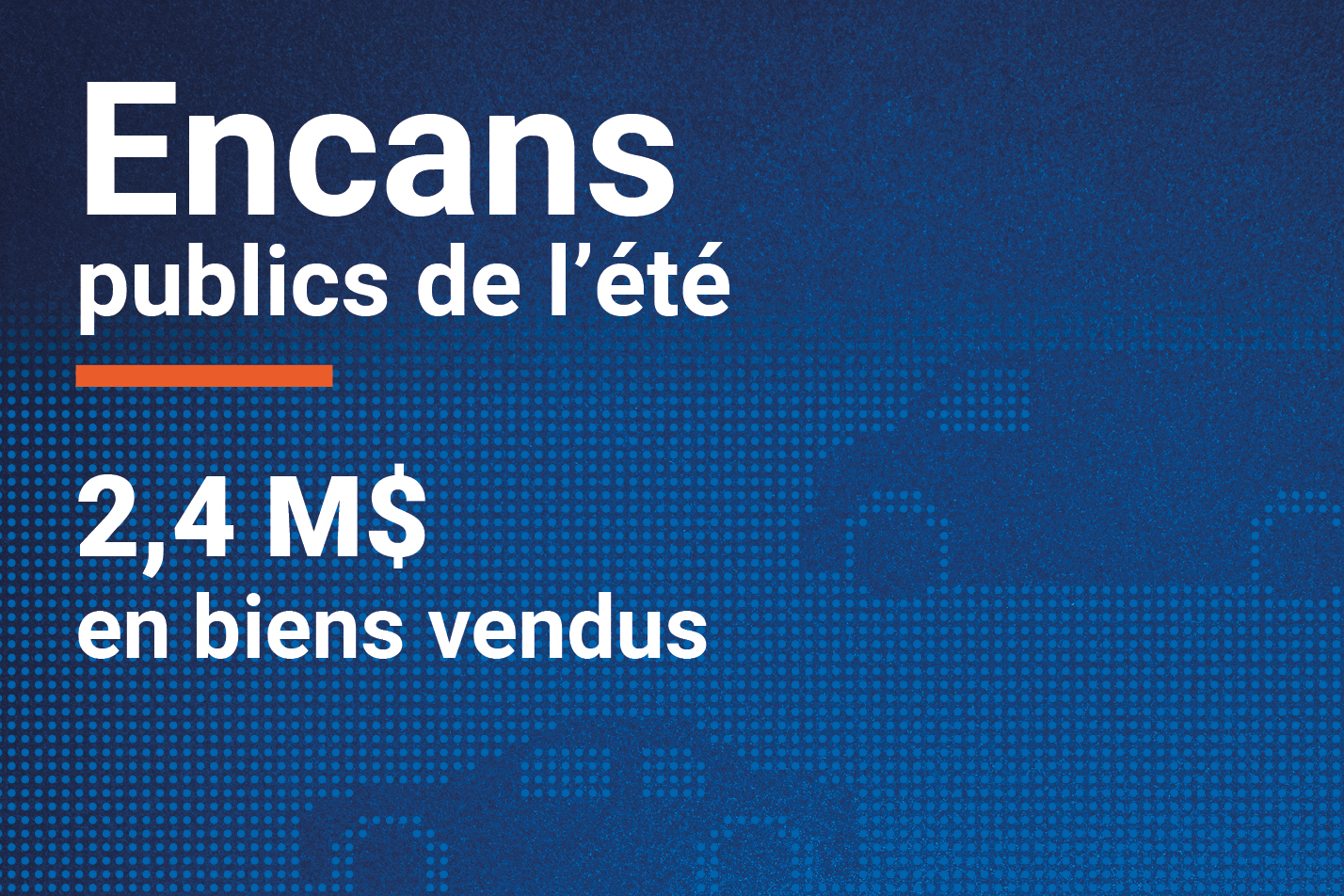 Le Centre d’acquisitions gouvernementales (CAG) a tenu des encans publics le 15 juin à Montréal et le 6 juillet à Québec. Ces activités ont permis de mettre aux enchères une quantité importante de biens récupérés : véhicules, camionnettes, pièces usagées, motocyclettes, véhicules utilitaires sport (VUS), remorques, pneus, outils, etc.