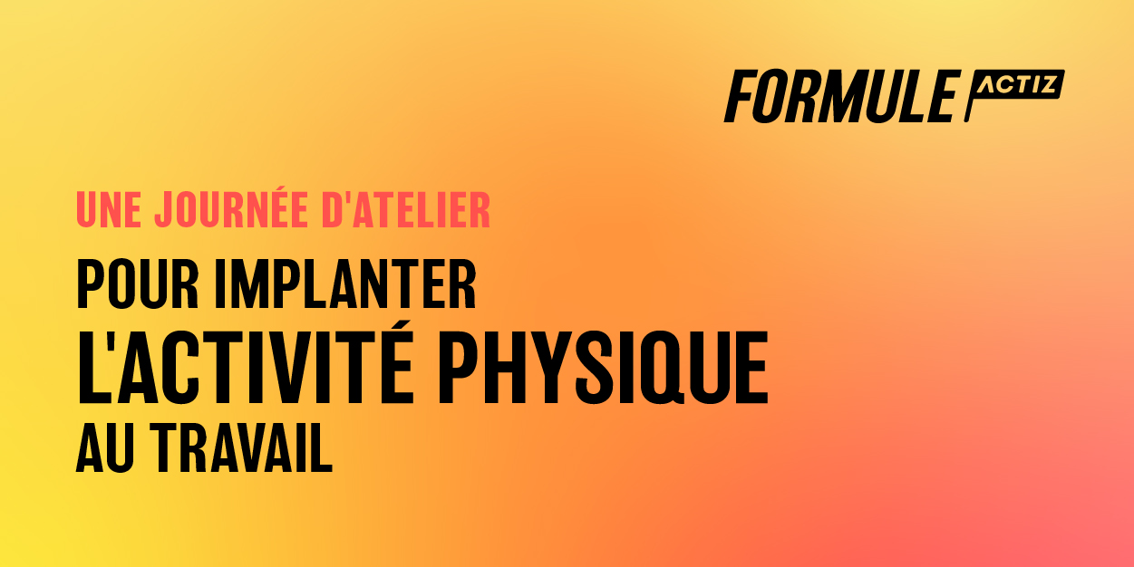 Formule ACTIZ est offerte gratuitement aux petites et moyennes entreprises (PME) du Québec (de 4 à 499 employés) qui souhaitent implanter des mesures pour favoriser la pratique de l’activité physique dans leur entreprise et qui ont besoin d’un coup de pouce pour atteindre le fil d’arrivée.
