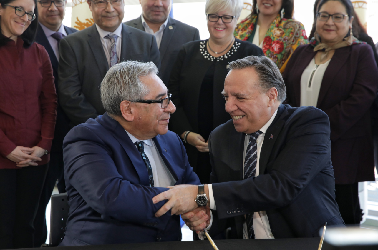 Montréal, le 17 février 2020 – Le premier ministre du Québec, François Legault, et le grand chef du Grand conseil des Cris (Eeyou Istchee) et président du Gouvernement de la nation crie, Abel Bosum, ont officiellement signé un protocole d’entente visant le développement économique à long terme, équilibré et respectueux des valeurs autochtones de la région d’Eeyou Istchee Baie-James. L’ambitieux projet proposé par la nation crie est accueilli favorablement par le gouvernement du Québec et s’inscrit en droite ligne avec la volonté du premier ministre d’approfondir la collaboration amorcée en 2002 par l’Entente concernant une nouvelle relation entre le gouvernement du Québec et les Cris du Québec, communément appelée la « Paix des braves ».