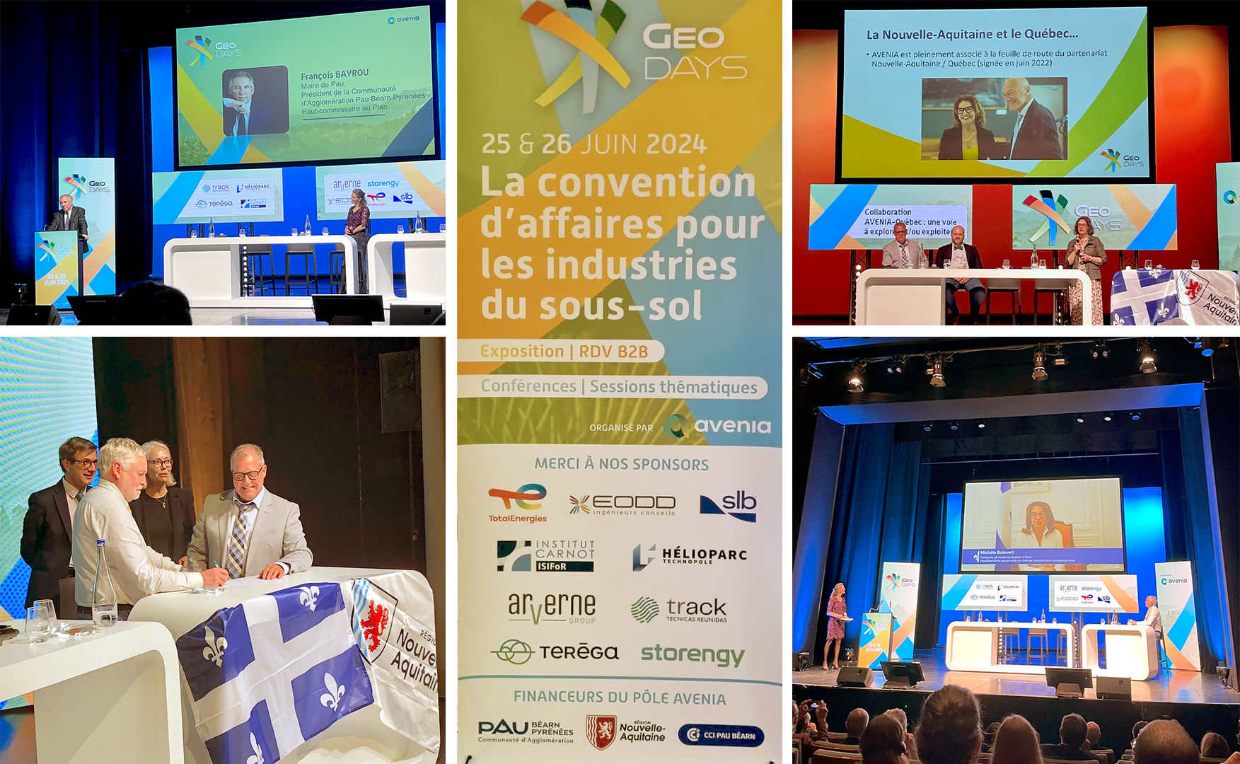 Les Géodays sont un lieu d'échange et de partage pour les décideurs et chefs de fils influents en géosciences, forage et ingénierie du sous-sol. Lors du lancement de ces deux journées de rencontre, le Haut-commissaire au Plan et Maire de Pau, François Bayrou, et le Conseiller régional délégué au fonds propres de la Nouvelle-Aquitaine, Bernard Uthurry, représentant Alain Rousset, ont salué la présence des participants québécois. Le Délégué interministériel français aux approvisionnements en minerais et métaux stratégiques, Benjamin Gallezot, a souligné, quant à lui, le cas exemplaire que représente le Québec. La Déléguée générale du Québec à Paris, Michèle Boisvert, a rappelé l'importance du renforcement de la coopération entre la France et le Québec sur les enjeux liés aux métaux critiques dans la transition énergétique et numérique.