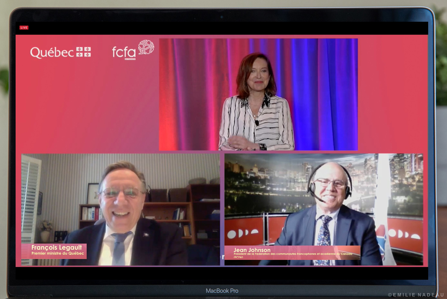 « La langue française est au cœur de ce qui fait la fierté de la nation québécoise. Elle est également le trait d’union qui nous lie aux communautés francophones et acadienne du Canada, avec qui nous partageons une longue histoire. Le projet de loi no 96, déposé par mon gouvernement, réitère la responsabilité particulière du Québec et le rôle de premier plan qu’il entend jouer au sein de la francophonie. En tant que premier ministre du seul État de langue française en Amérique du Nord, j’entends favoriser l’engagement de toutes les composantes de l’Administration québécoise à soutenir le rayonnement du français et l’essor des communautés francophones et acadiennes, notamment par le partage de bonnes pratiques et de ressources et l’établissement de partenariats. La poursuite de la collaboration unique de mon gouvernement avec la Fédération des communautés francophones et acadienne du Canada est un premier pas en ce sens. »