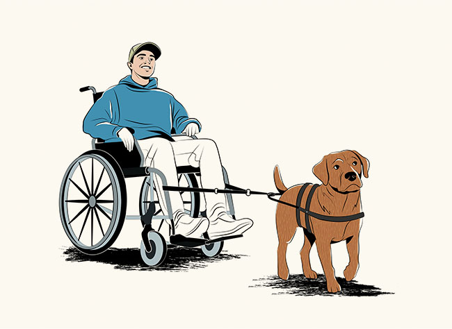 Les chiens d’assistance peuvent ramasser des objets, guider, avertir, apporter réconfort et sécurité et bien plus. Ils ne sont pas de simples animaux de compagnie. Ils sont considérés comme une aide technique, au même titre qu’un fauteuil roulant ou une canne blanche.