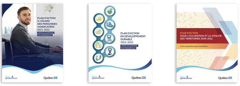 Créé le 1er septembre 2020, le Centre d’acquisitions gouvernementales (CAG) est fier de publier, après seulement quelques mois d’existence, trois plans d’action réalisés dans le cadre de ses obligations légales : le Plan d’action pour les personnes handicapées 2021-2022 (PDF 754 Ko), le Plan d’action en développement durable 2021-2022 (PDF 463 Ko) ainsi que le Plan d’action pour l’occupation et la vitalité des territoires 2020-2022.