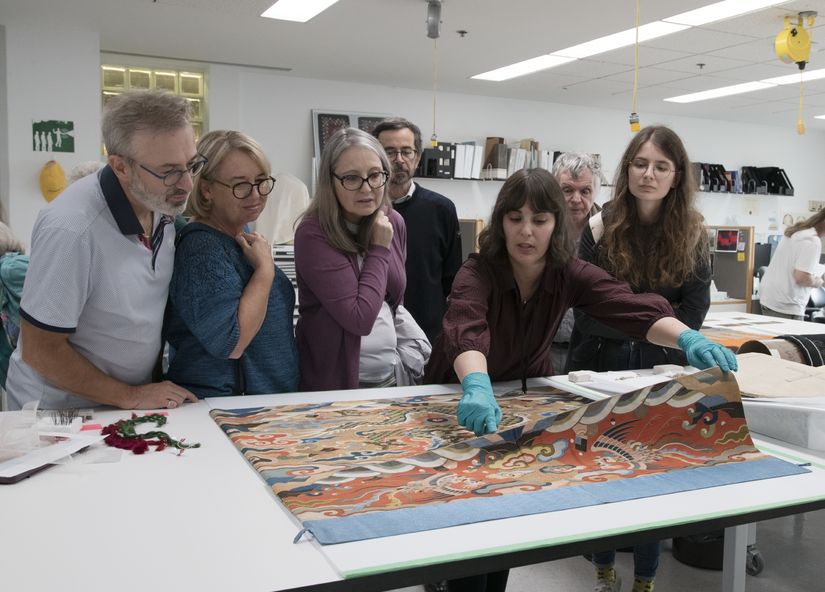 Parement frontal de table d’autel de la dynastie Ming, du Musée des beaux-arts de Montréal. Restauratrice : Marianne LeBel de l’atelier Textiles. © Annie T. Roussel, CCQ (MCC) 2024