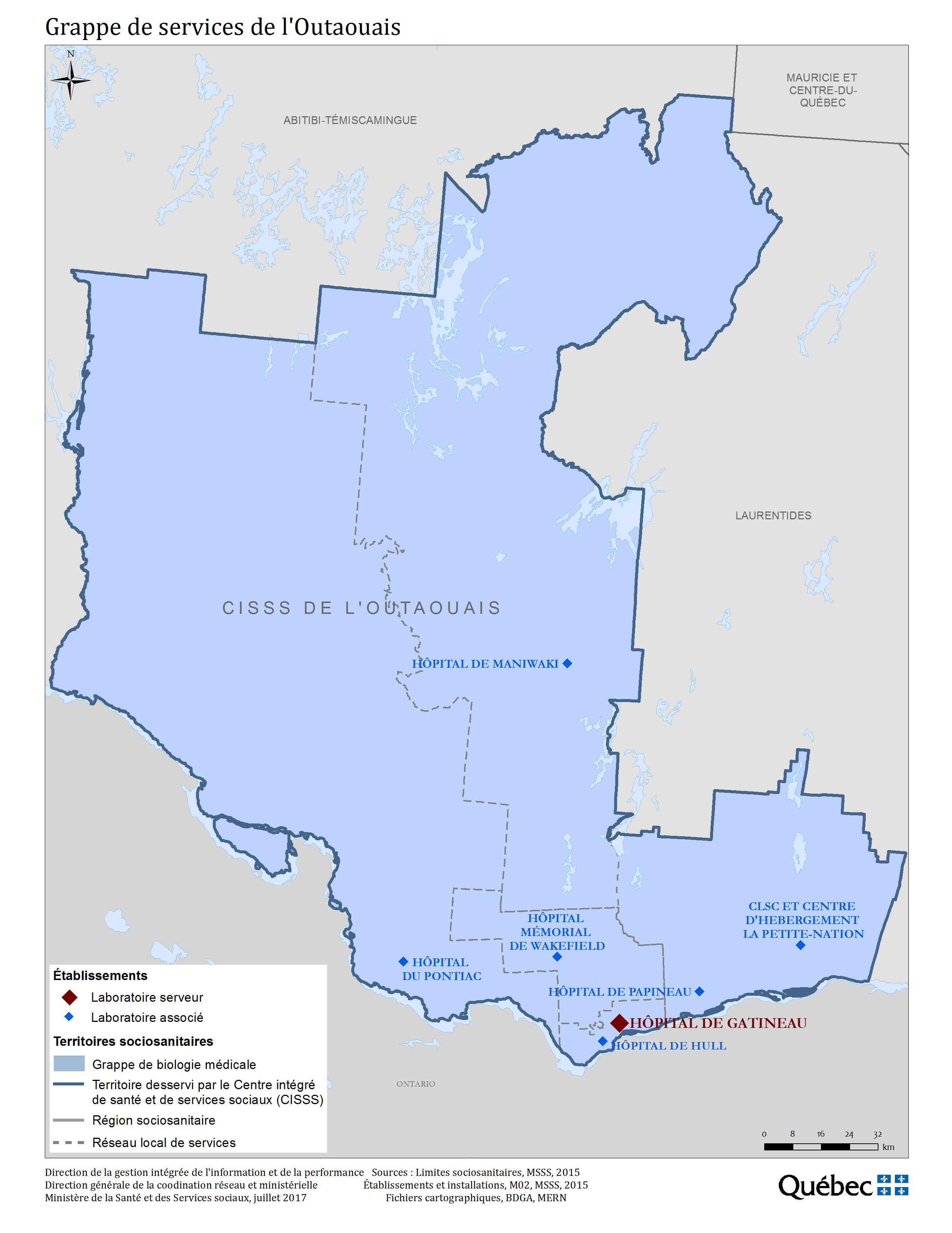 Le laboratoire serveur de l’Hôpital de Gatineau (Hôpital de Hull en pathologie) dessert les établissements et installations suivants.