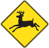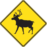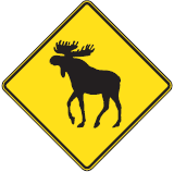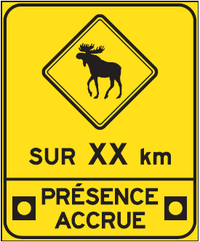 Des panneaux peuvent être installés pour indiquer la présence potentielle d’animaux sauvages, tels que les cerfs de Virginie, les orignaux et les caribous, sur le chemin public ou à ses abords.