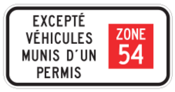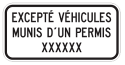 Ces panonceaux sont utilisés pour indiquer que les véhicules munis d’un permis approprié ne sont pas concernés par l’interdiction de stationnement.