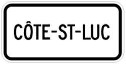 Un panonceau indiquant le nom de la municipalité ou de l'arrondissement peut accompagner le panneau « Stationnement interdit ». Il indique que la restriction s’applique à l’ensemble de la municipalité ou de l’arrondissement (dans l’exemple ci-dessus, Côte-St-Luc).