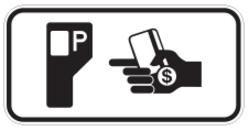 Ce panonceau indique l'endroit où se situe l'horodateur pour payer lorsque la zone de stationnement est tarifée.