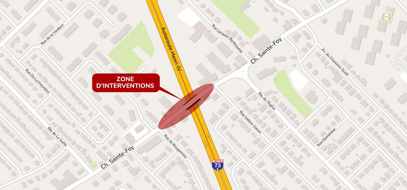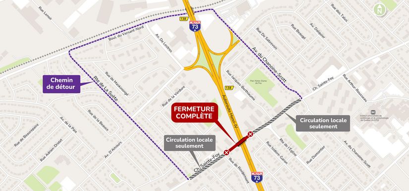 Le projet de reconstruction du pont d’étagement situé sur le chemin Sainte-Foy, au-dessus de l’autoroute 73 (Henri-IV), débutera au printemps 2026 et se poursuivra jusqu’à l’automne.