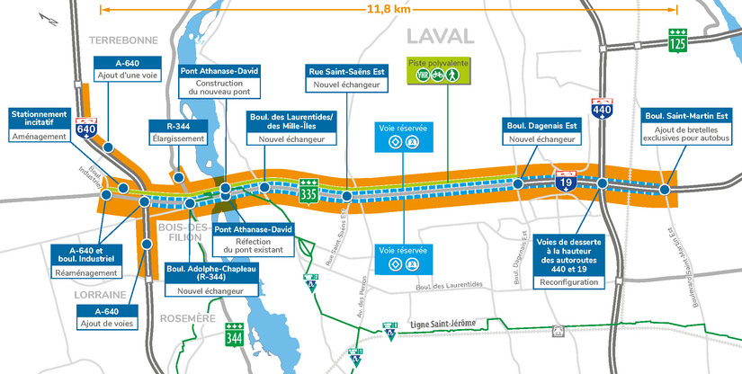 - le réaménagement de l’échangeur de l’autoroute 640 et de la route 335;