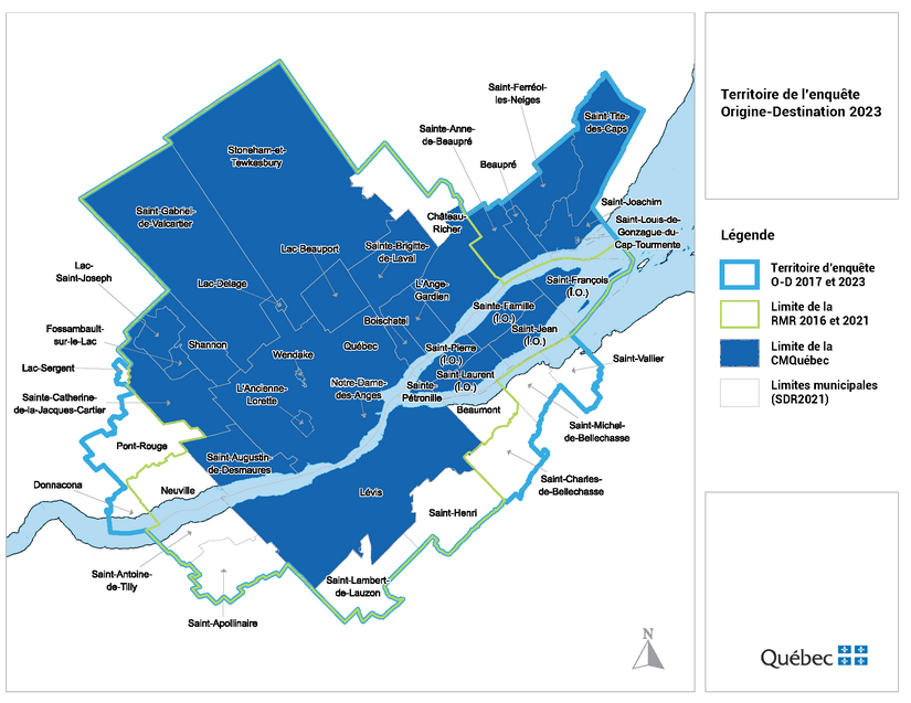 Lors des enquêtes précédentes, le gouvernement du Québec réalisait une enquête-cordon ciblant les déplacements en provenance de l’extérieur de la région étudiée. En 2023, l’enquête-cordon a été remplacée par l’acquisition de données origine-destination massives des véhicules et des camions.